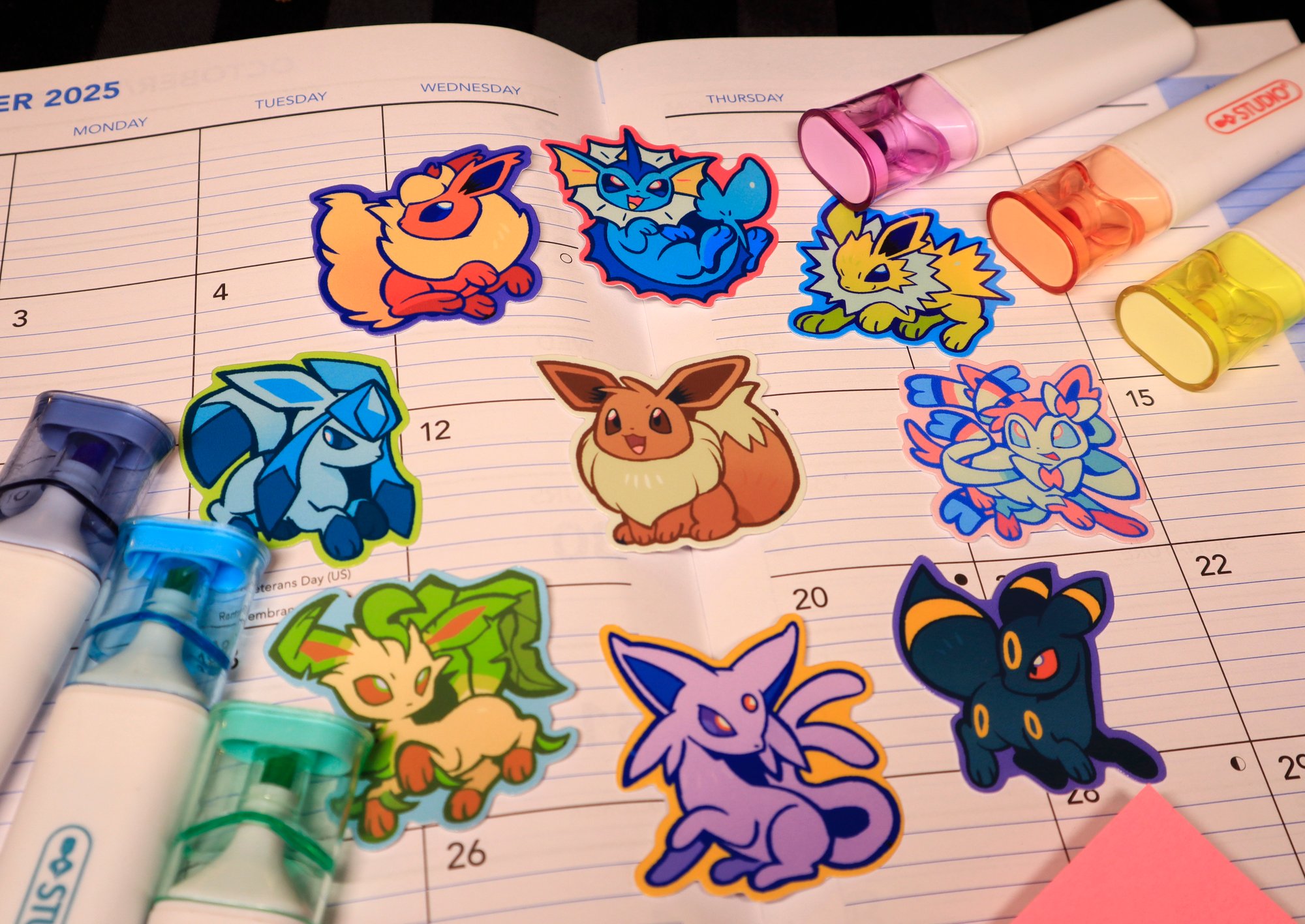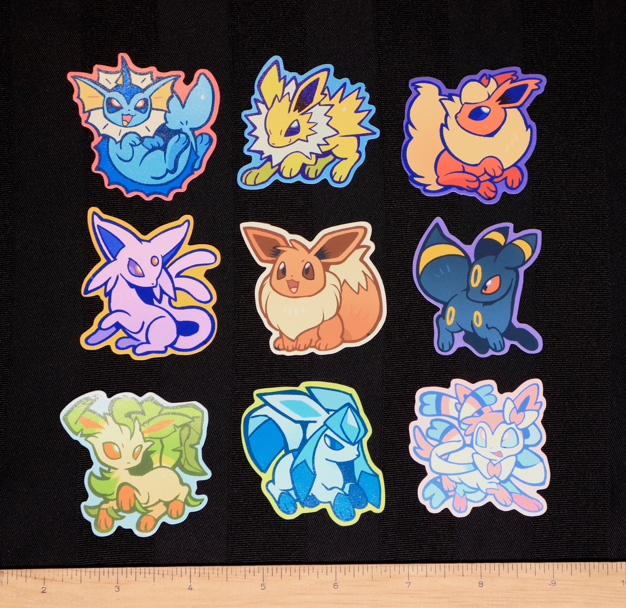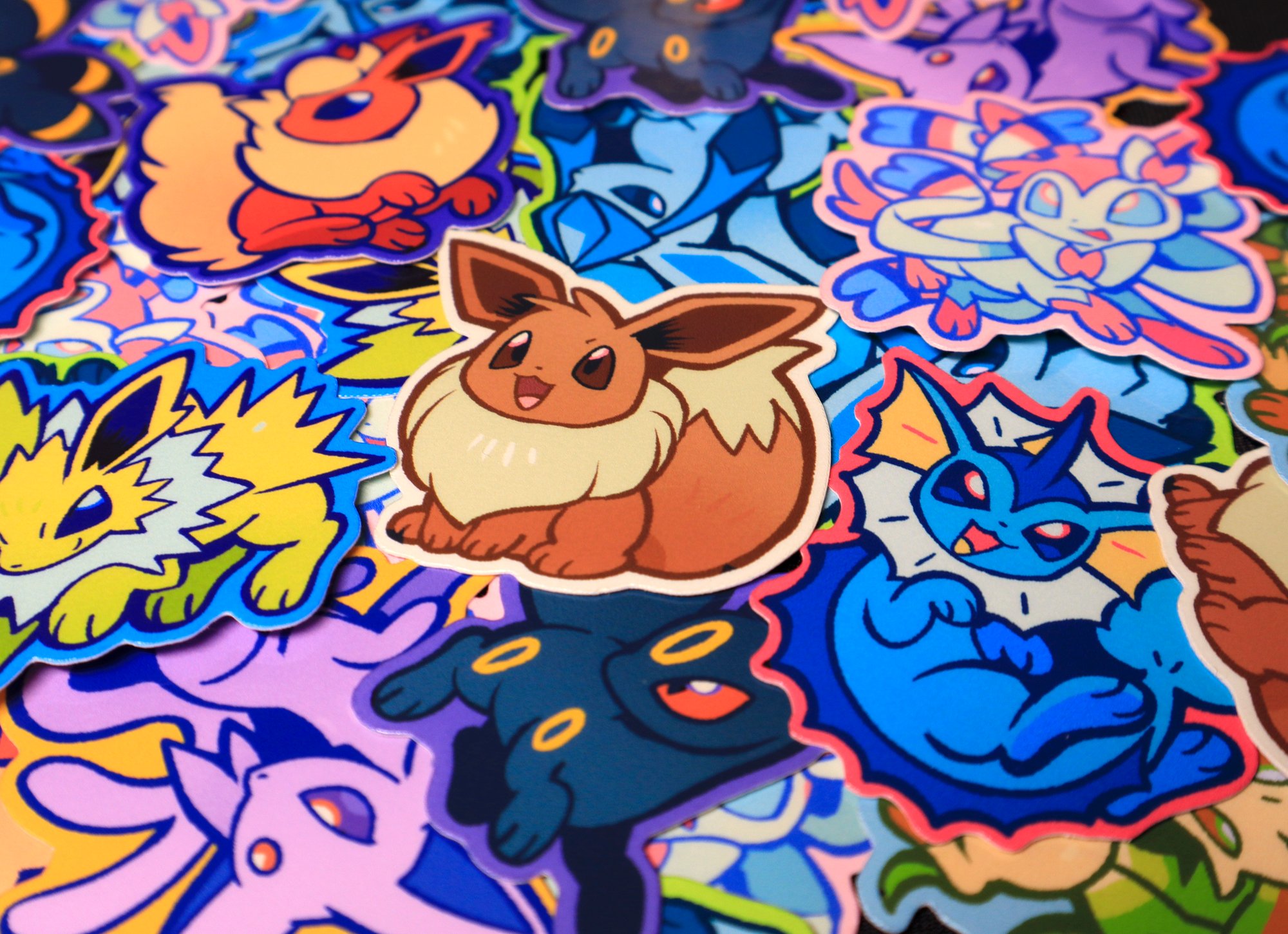 ~2" stickers featuring Eevee and all of its evolutions. Stickers are made with a water resistant vinyl.