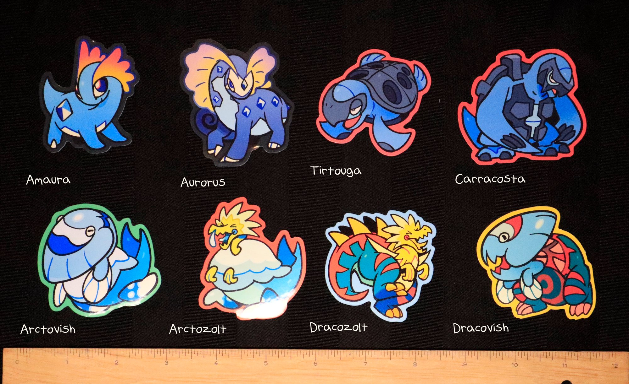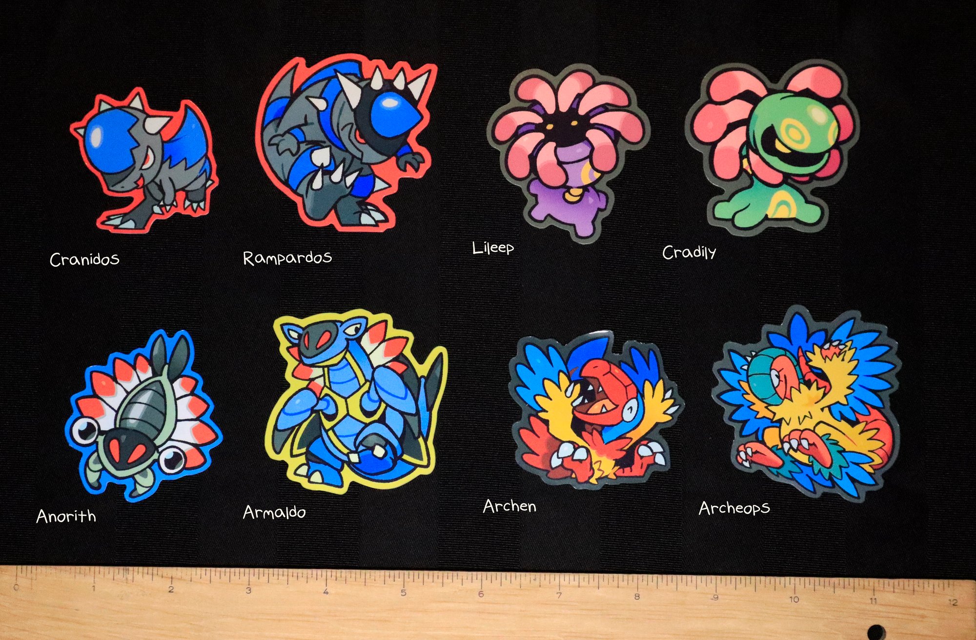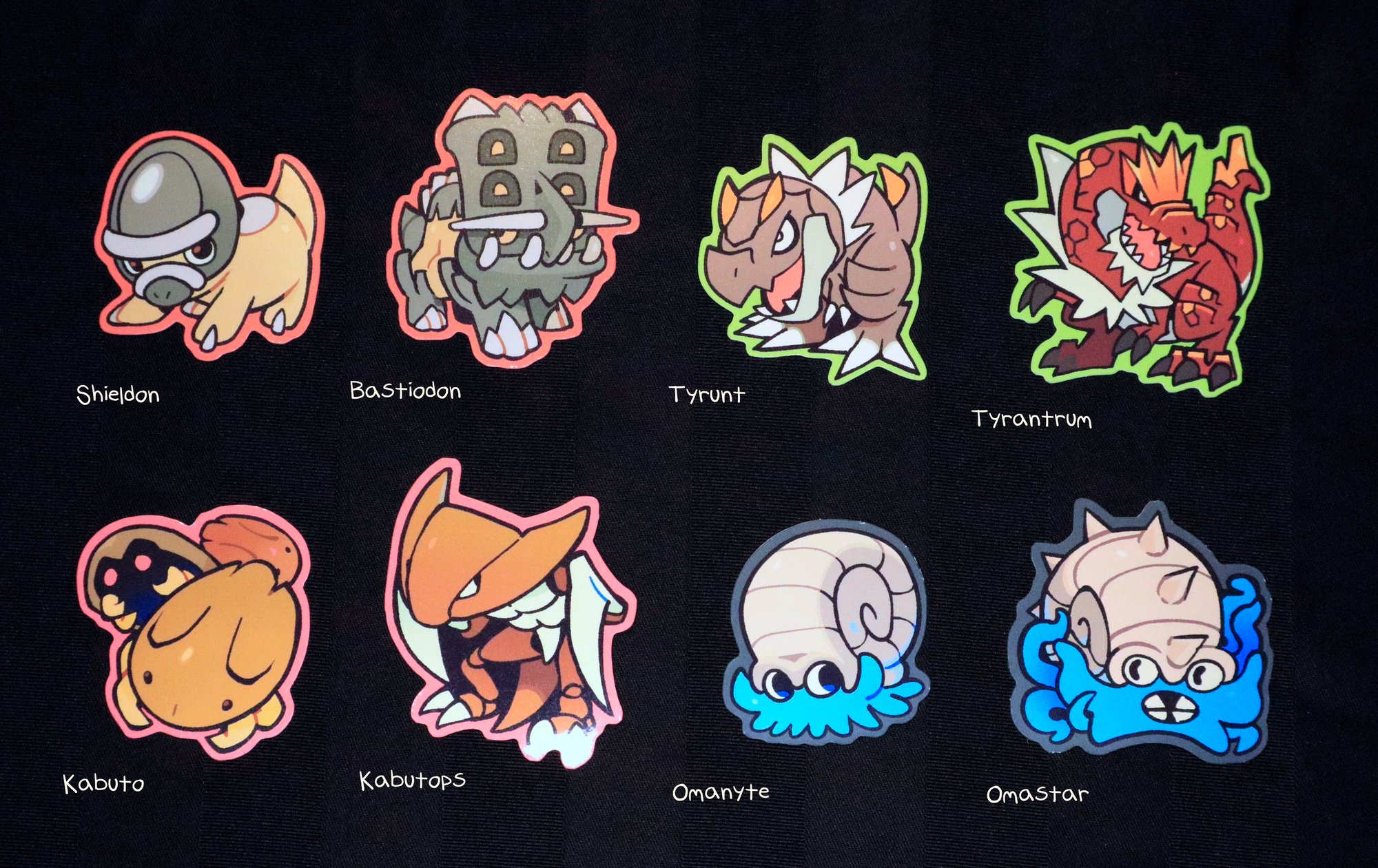 Variously sized stickers featuring ALL of the fossil pokemon!