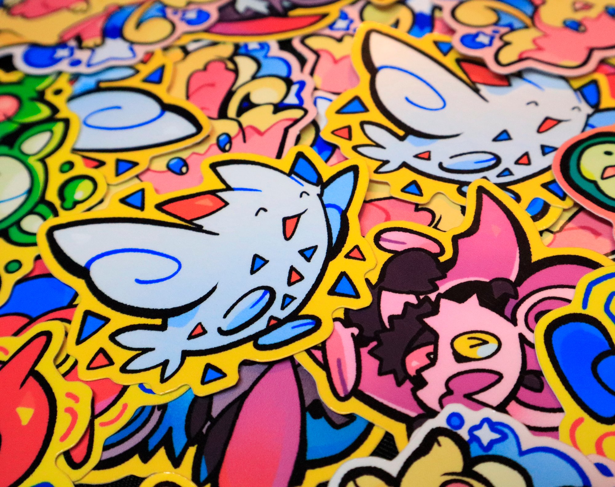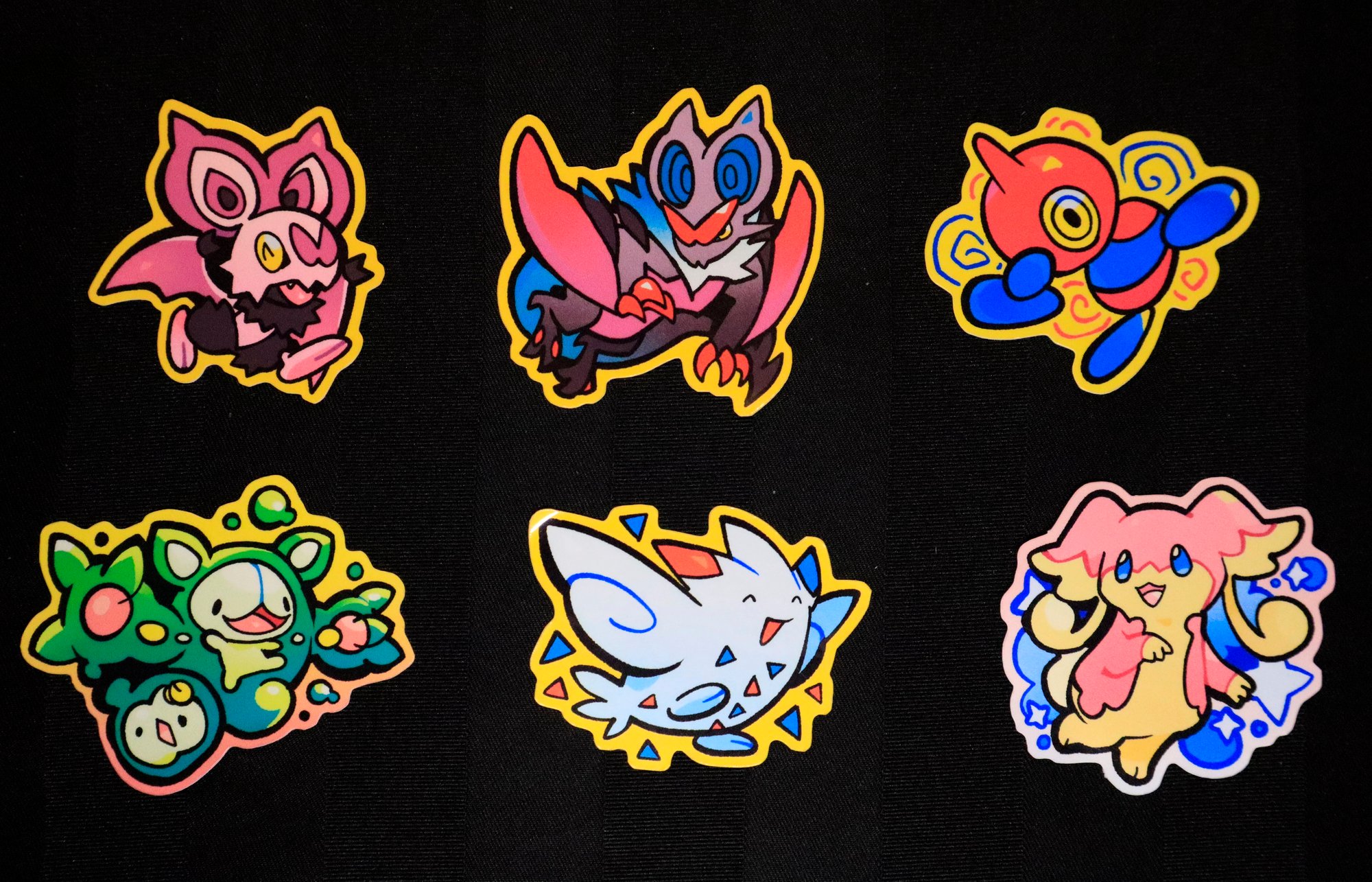 There's nothing that connects these pokemon together other than I drew them at the same time. ~2.5" of laminated vinyl and featuring several random pokemon, these stickers make great accessories for every surface.