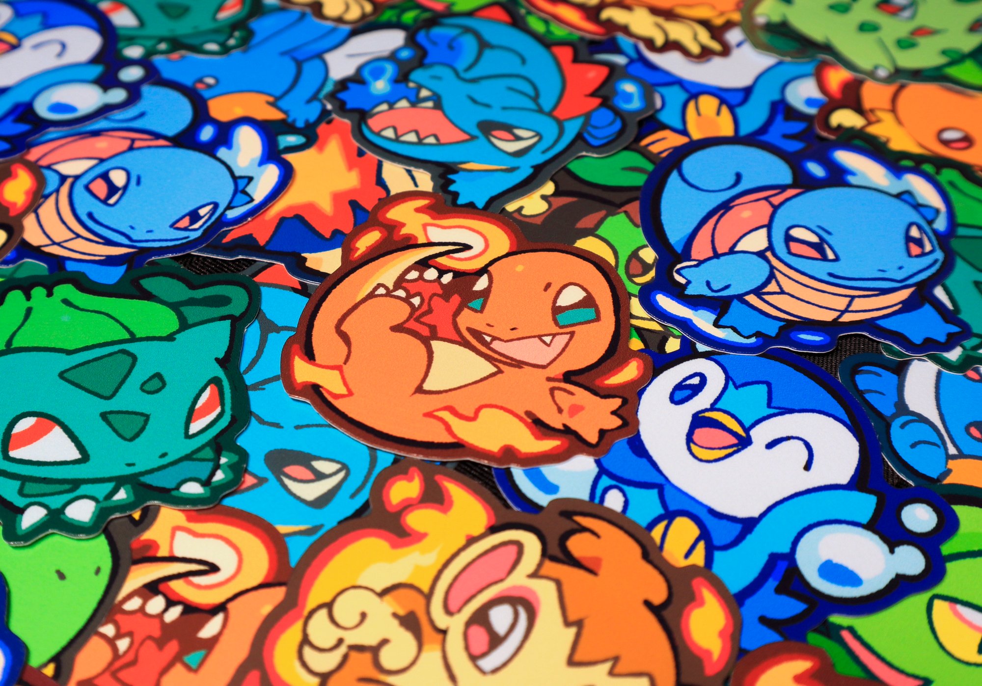 ~2" Vinyl stickers featuring the first 12 starter pokemon!